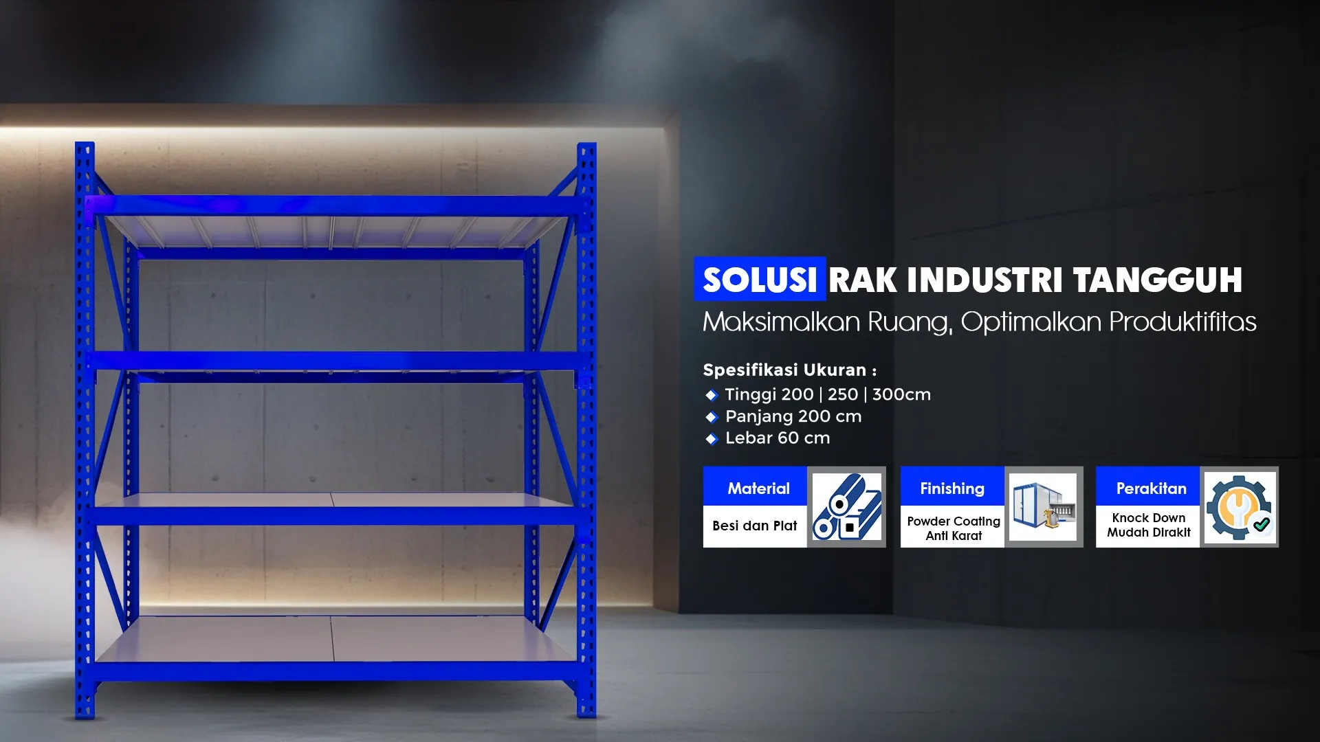Nikmati desain fleksibel yang bisa disesuaikan dengan luas ruangan dan jenis produk Anda, serta harga kompetitif dengan layanan pengiriman cepat. Dengan pengalaman bertahun-tahun, kami memastikan setiap rak yang kami kirim memenuhi standar kualitas terbaik.