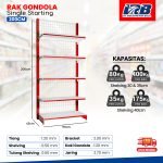 | Kelengkapan Unit | – 2 pcs Tiang gondola – 1 pcs Jaring gondola – 2 pcs Penutup dasar samping gondola – 1 pcs Shelving dasar 90x40cm – 3–4 pcs Shelving atas 30cm–35cm – 6–8 pcs Bracket gondola 30cm–35cm |