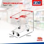 Troli Swalayan Tipe Y cocok untuk supermarket atau toko grosir dengan kebutuhan kapasitas lebih besar. Dilengkapi alas tambahan di bagian bawah untuk membawa dus atau barang berukuran besar. Desain kaki lebar menambah stabilitas saat membawa beban berat.