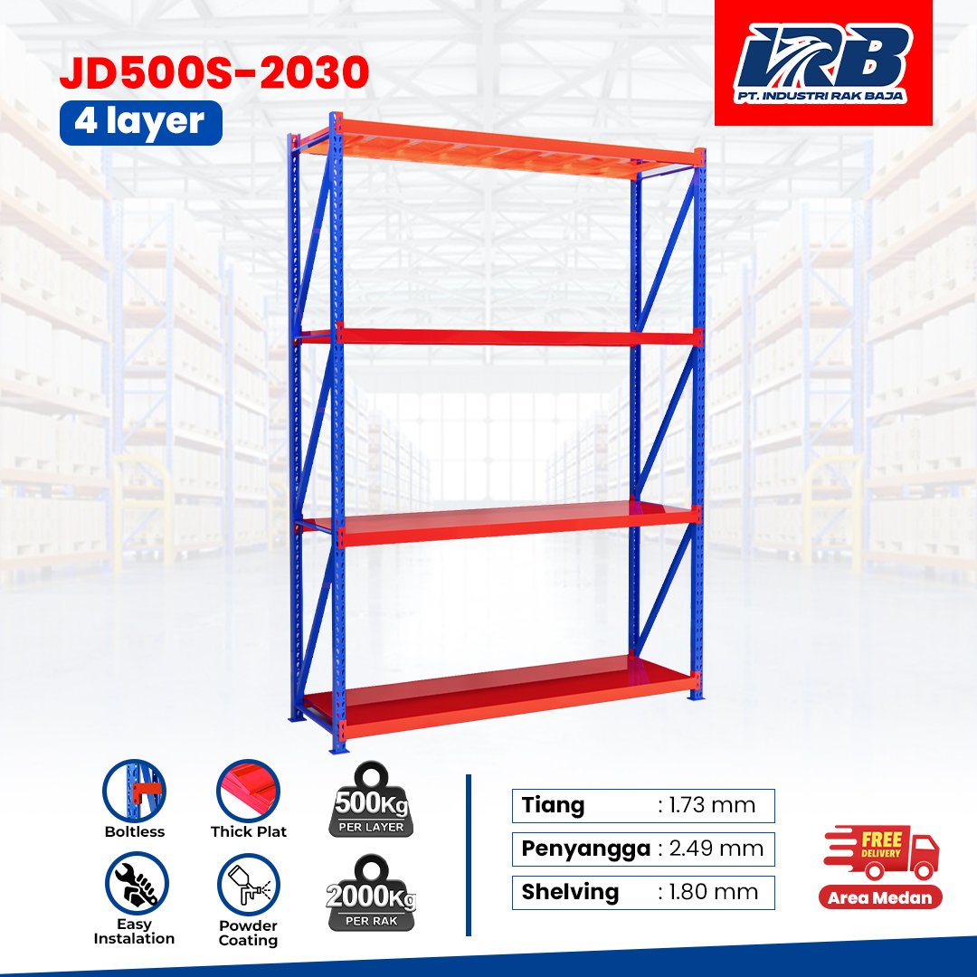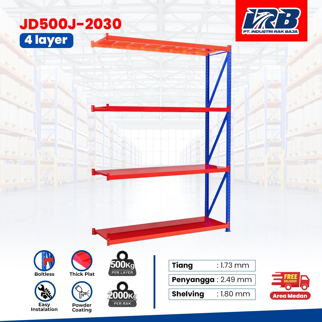 Rak gudang diproduksi menggunakan spesifikasi standar pabrik dengan kualitas yang konsisten, meliputi: