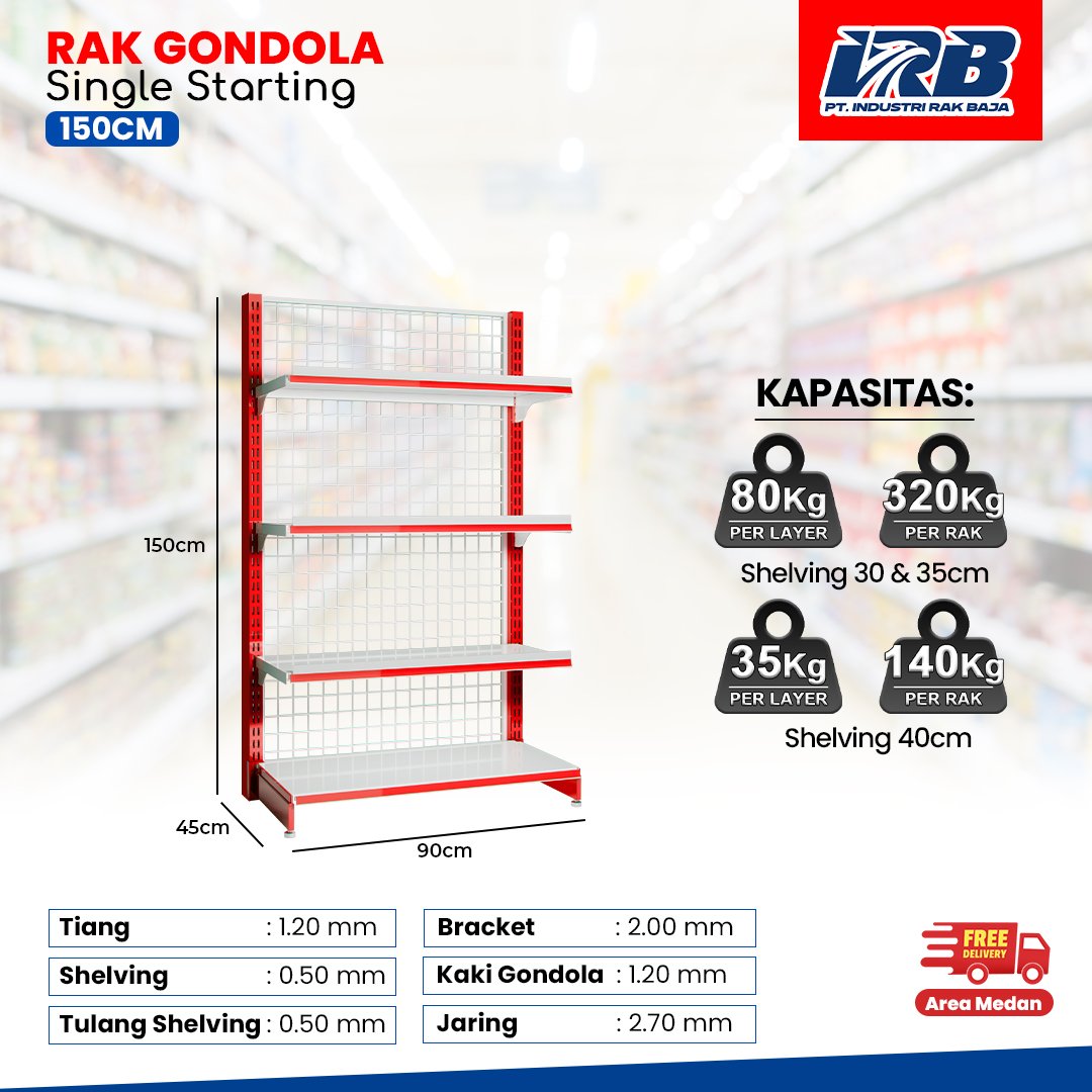 Rak toko diproduksi menggunakan spesifikasi standar pabrik untuk memastikan kualitas yang konsisten, meliputi: