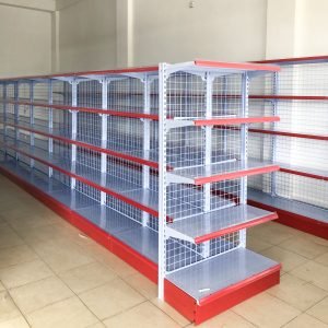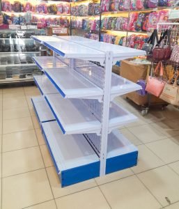 Rak Gondola Double adalah rak minimarket yang memiliki 2 sisi (double) dibagian depan dan belakang. Rak ini memiliki area display yang lebih luas dan banyak. Rak Gondola Double umumnya di tempatkan di bagian tengah ruangan toko. Rak Gondola Single sangat cocok digunakan pada toko yang memiliki ruangan yang luas.