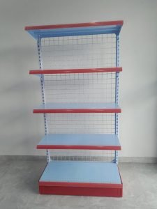 Rak Gondola End merupakan rak yang digunakan sebagai penutup bagian depan dan belakang baris rak gondola double. Berfungsi agar pajangan toko terlihat lebih rapih.