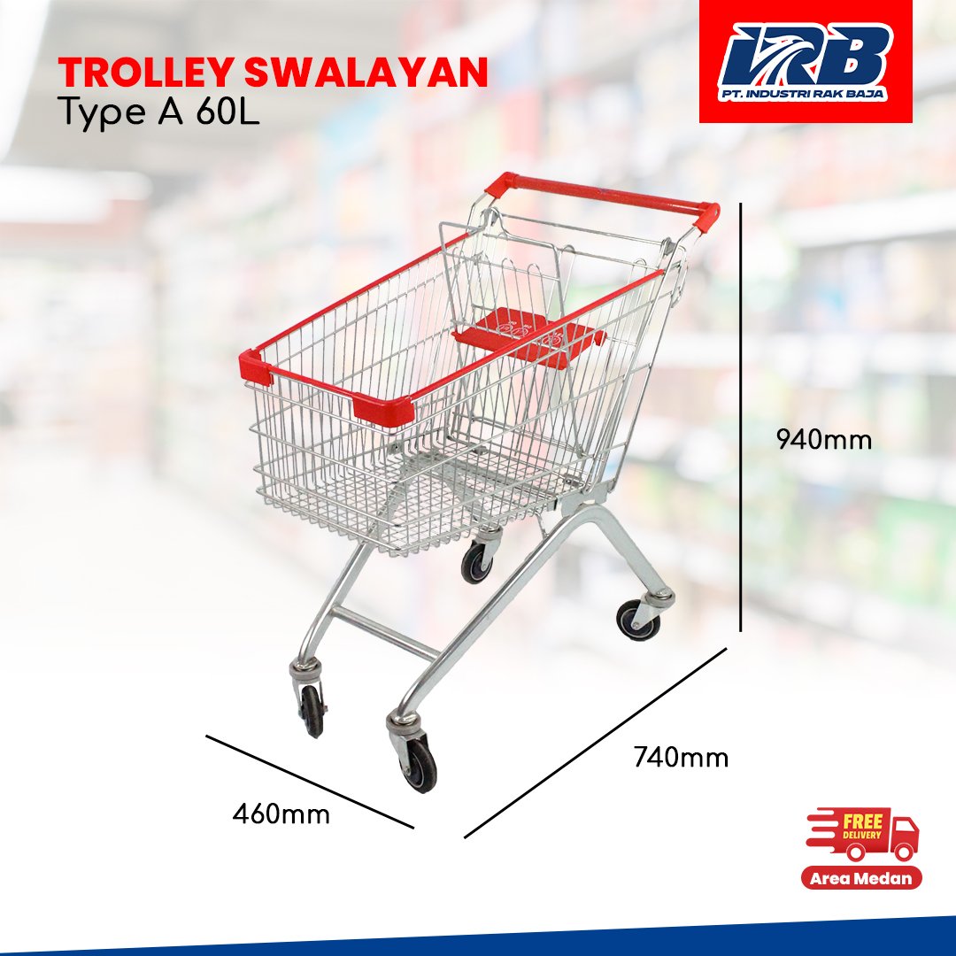 Troli Swalayan Tipe A dirancang untuk kebutuhan belanja harian di minimarket dan toko retail. Ukurannya ideal untuk pelanggan individu atau keluarga kecil. Material kawat besi dengan finishing chrome memberikan tampilan bersih dan tahan lama. Roda putar 360° menjamin kemudahan manuver.