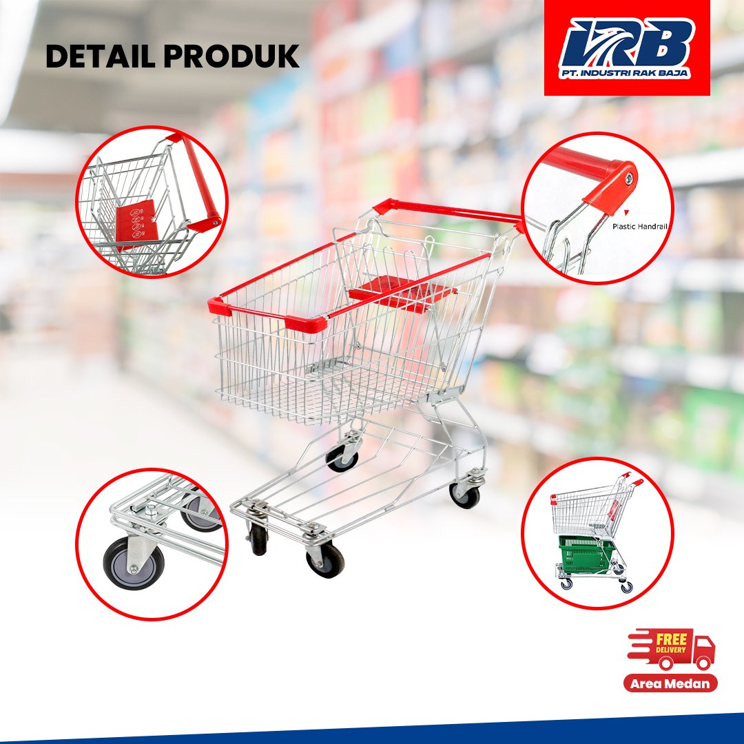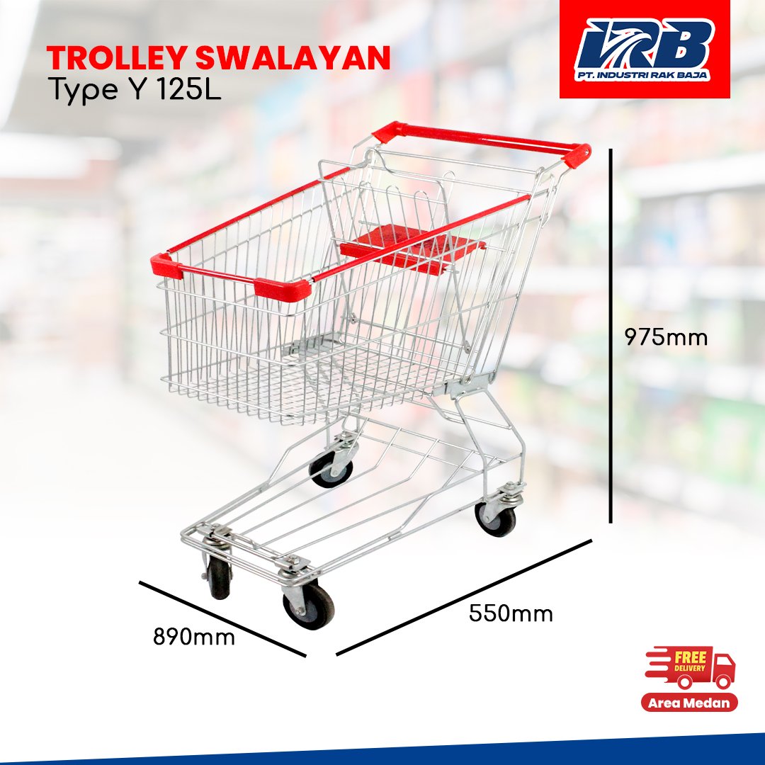 Troli Swalayan Tipe Y cocok untuk supermarket atau toko grosir dengan kebutuhan kapasitas lebih besar. Dilengkapi alas tambahan di bagian bawah untuk membawa dus atau barang berukuran besar. Desain kaki lebar menambah stabilitas saat membawa beban berat.