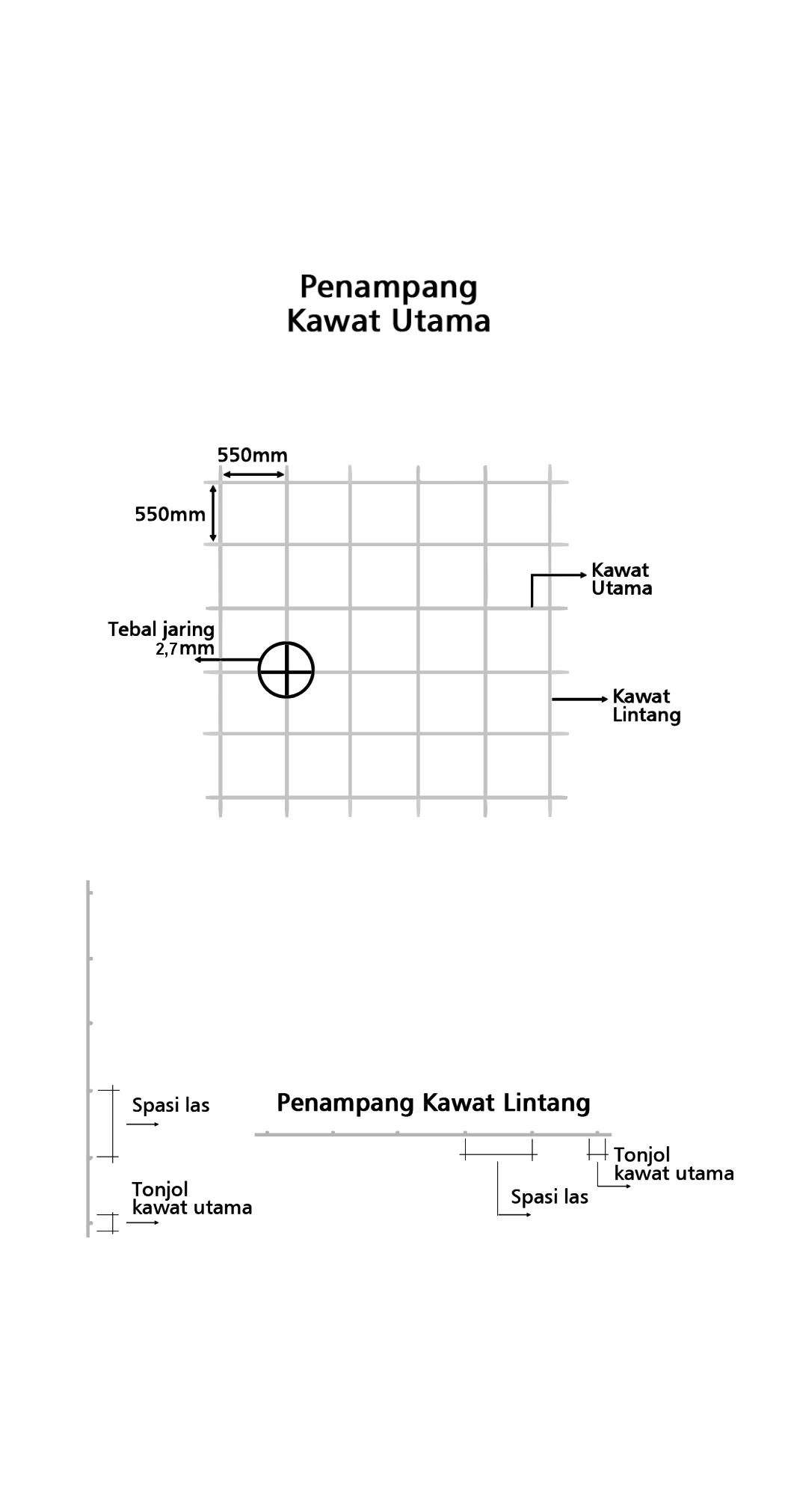 Jarak Antar Kawat | 550 mm × 550 mm |